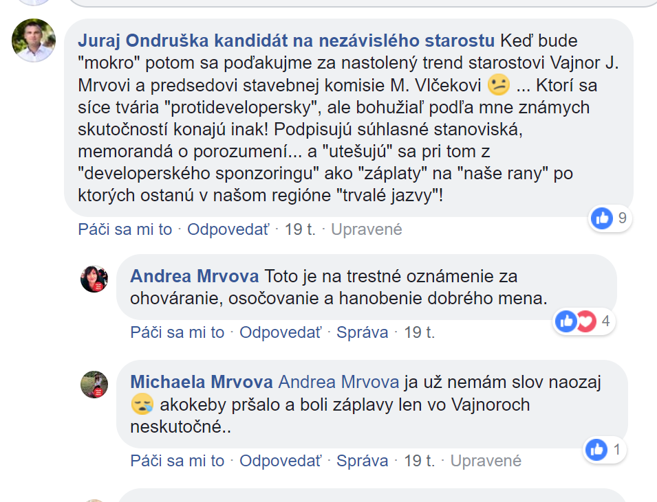 Za komentár v tomto príspevku p. starosta J.M. podal trestné oznámenie. Na svojich vyjadreniach trvám. Prokurátor po mojom stanovisku trestné oznámenie zamietol! Nenechám sa zastrašiť!